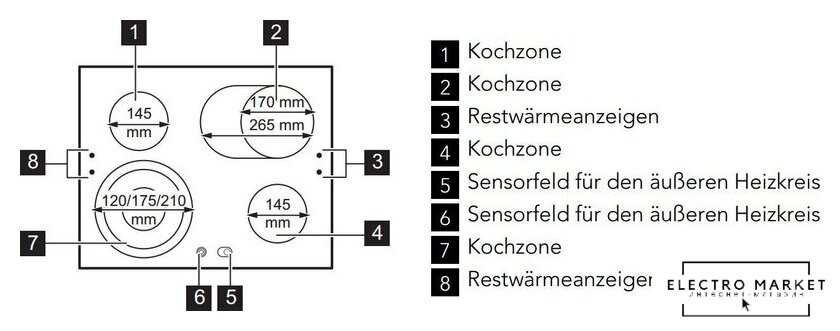 HiLight на 5 конфорок, cтеклокерамика, мощность: 8600 Вт, независимая установка, размеры (ШхГ): 71.8x51 см