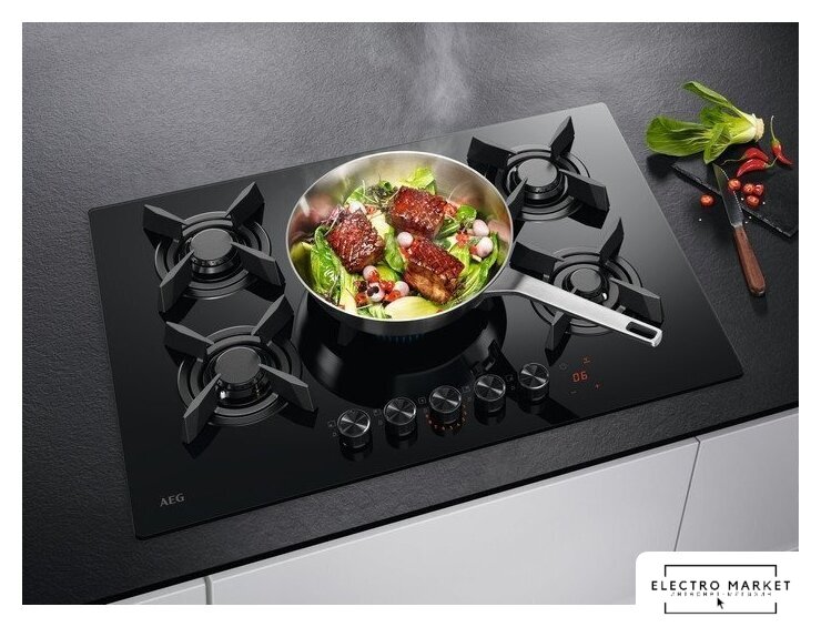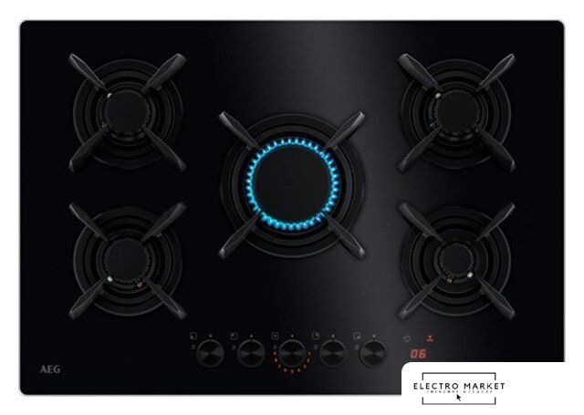 газовая на 5 конфорок, закаленное стекло, мощность: 11300 Вт, автоматический электроподжиг, газ-контроль, решетки: чугун, независимая установка, размеры (ШхГ): 75x51 см