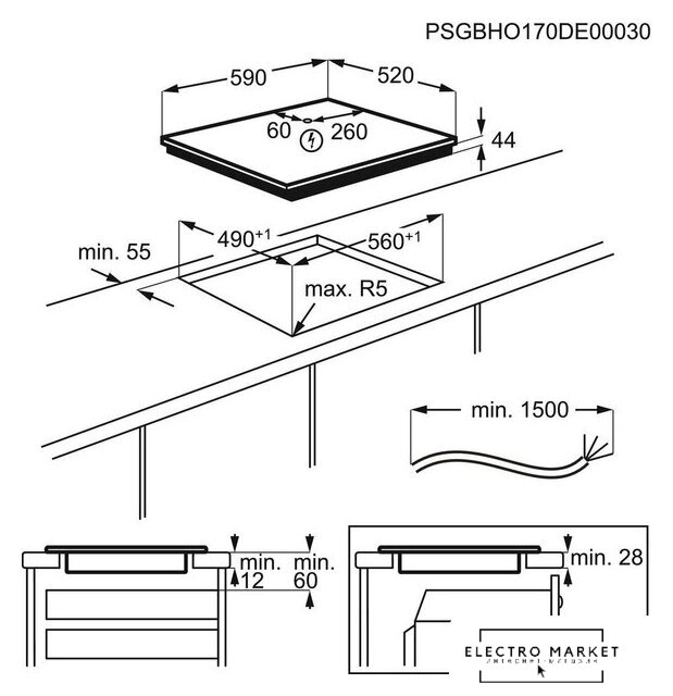 индукционная на 5 конфорок, cтеклокерамика, мощность: 7400 Вт, независимая установка, размеры (ШхГ): 90x51 см