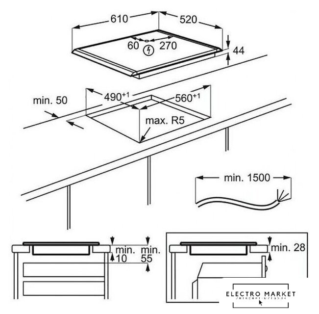 индукционная на 4 конфорки, cтеклокерамика, мощность: 7300 Вт, автоматика закипания, независимая установка, размеры (ШхГ): 62.6x52.6 см