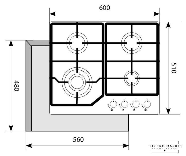 газовая на 4 конфорки, нержавеющая сталь, мощность: 8000 Вт, автоматический электроподжиг, газ-контроль, решетки: чугун, независимая установка, размеры (ШхГ): 58x50 см