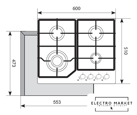 | Подробная информация о конфорках | большая конфорка 1 × 3000 Вт, стандартная конорка 2 × 1750 Вт, вспомогательная конфорка 1 × 1000 Вт |