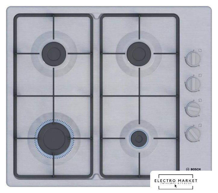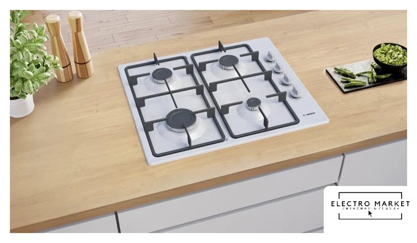 газовая на 4 конфорки, закаленное стекло, мощность: 8600 Вт, автоматический электроподжиг, газ-контроль, решетки: чугун, независимая установка, размеры (ШхГ): 58x51 см