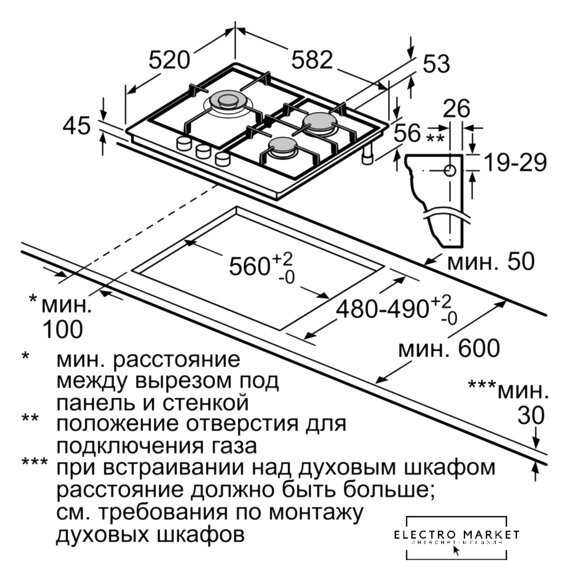 газовая на 4 конфорки, эмалированная сталь, мощность: 8150 Вт, автоматический электроподжиг, газ-контроль, решетки: чугун, независимая установка, размеры (ШхГ): 60x52 см