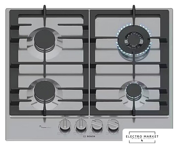 газовая на 5 конфорок, нержавеющая сталь, мощность: 12500 Вт, автоматический электроподжиг, газ-контроль, решетки: чугун, независимая установка, размеры (ШхГ): 91.5x52 см