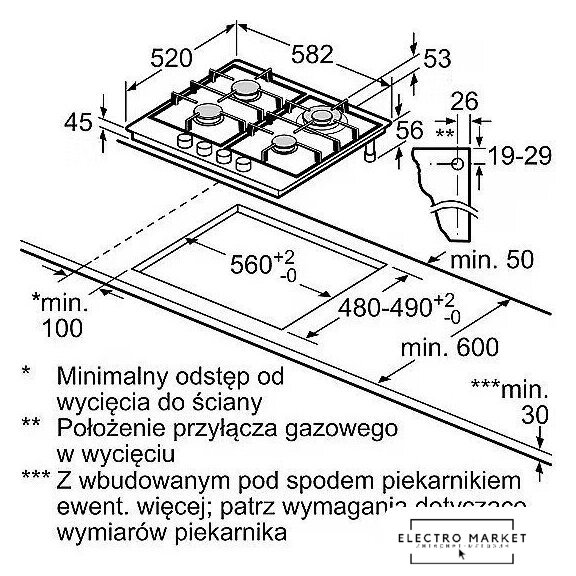 газовая на 4 конфорки, закаленное стекло, мощность: 8000 Вт, автоматический электроподжиг, газ-контроль, решетки: чугун, независимая установка, размеры (ШхГ): 59x52 см