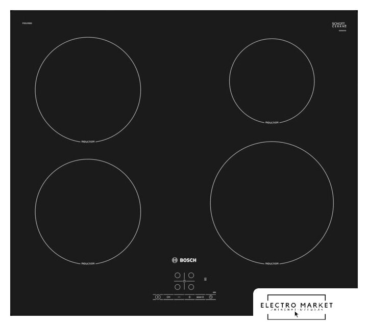 индукционная на 4 конфорки, cтеклокерамика, независимая установка, размеры (ШхГ): 59x51 см