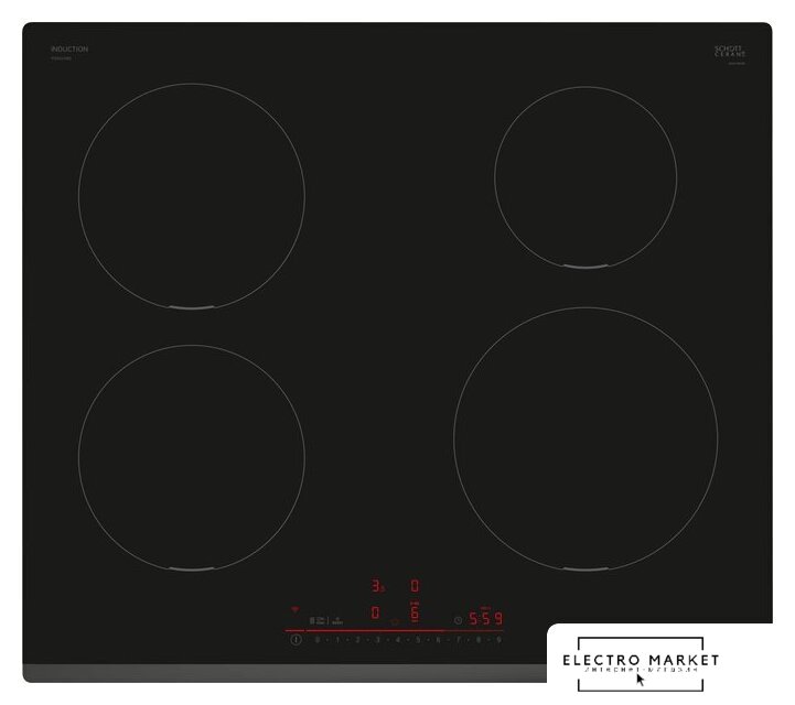 индукционная на 4 конфорки, cтеклокерамика, мощность: 7400 Вт, независимая установка, размеры (ШхГ): 59x52 см