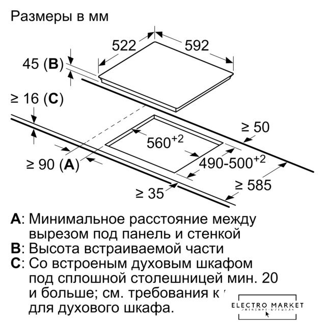 HiLight на 4 конфорки, cтеклокерамика, мощность: 6000 Вт, независимая установка, размеры (ШхГ): 59x52 см
