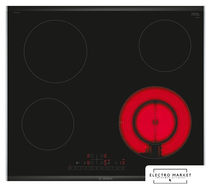 HiLight на 4 конфорки, cтеклокерамика, мощность: 8600 Вт, независимая установка, размеры (ШхГ): 60.6x52.7 см
