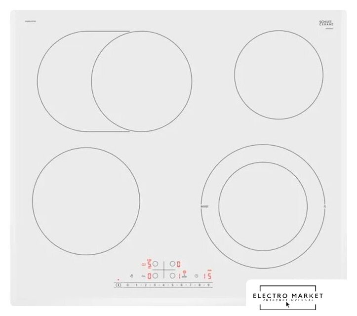 HiLight на 4 конфорки, cтеклокерамика, мощность: 8600 Вт, независимая установка, размеры (ШхГ): 60.6x52.7 см