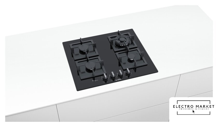 газовая на 4 конфорки, закаленное стекло, мощность: 7300 Вт, автоматический электроподжиг, газ-контроль, решетки: чугун, независимая установка, размеры (ШхГ): 60x51 см