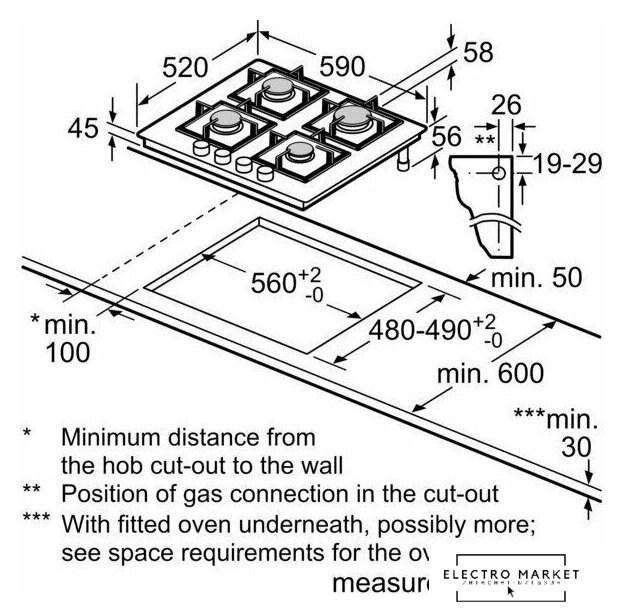 газовая на 4 конфорки, нержавеющая сталь, мощность: 9000 Вт, автоматический электроподжиг, газ-контроль, решетки: чугун, независимая установка, размеры (ШхГ): 60x51 см