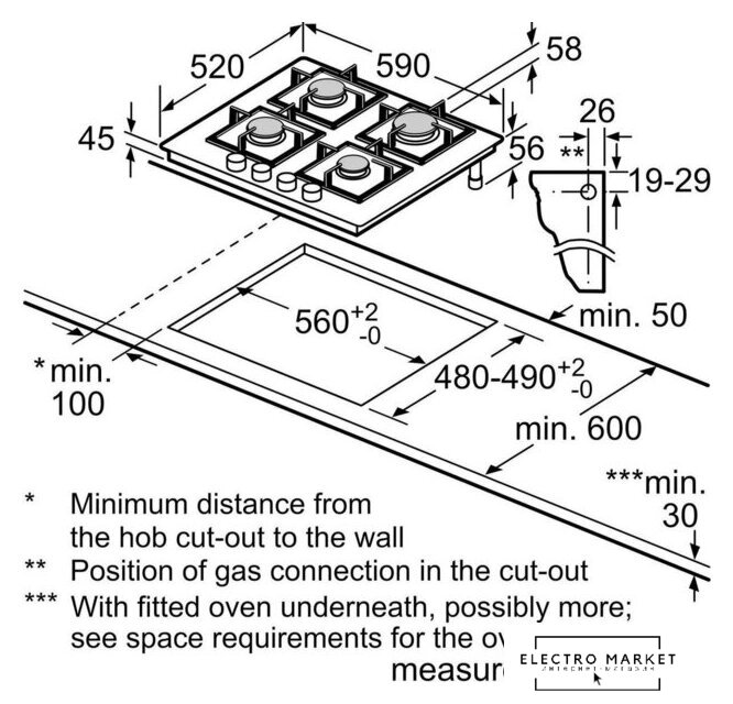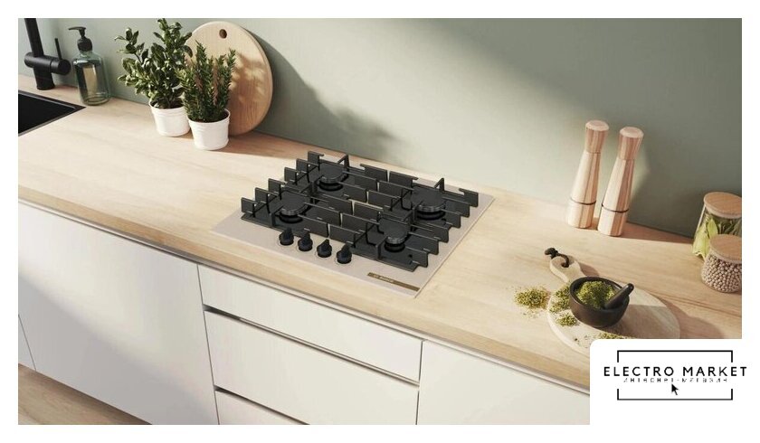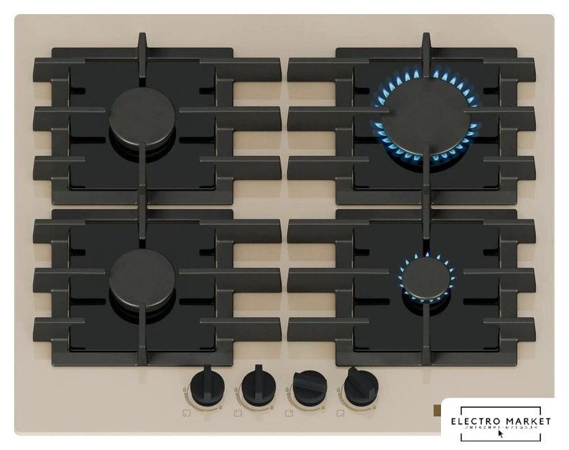 газовая на 4 конфорки, cтеклокерамика, решетки: чугун, независимая установка, размеры (ШхГ): 59x52 см