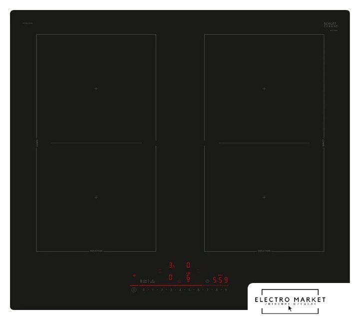 индукционная на 4 конфорки, cтеклокерамика, независимая установка, размеры (ШхГ): 59x52 см