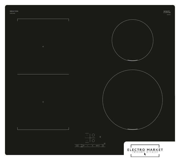 индукционная на 4 конфорки, cтеклокерамика, мощность: 7400 Вт, независимая установка, размеры (ШхГ): 59x52 см