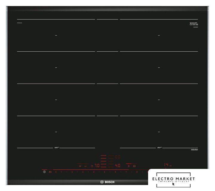 индукционная на 4 конфорки, cтеклокерамика, мощность: 7400 Вт, автоматика закипания, независимая установка, размеры (ШхГ): 59x52 см