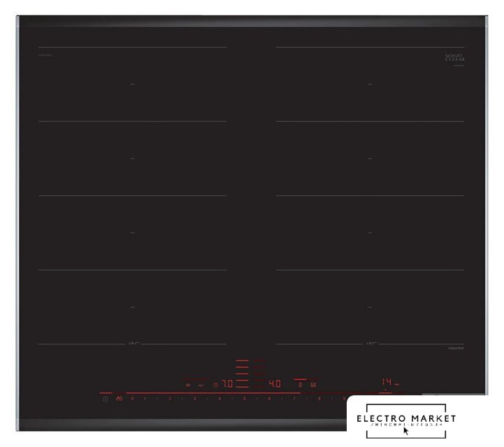 индукционная на 4 конфорки, cтеклокерамика, мощность: 7400 Вт, независимая установка, размеры (ШхГ): 59.6x51 см