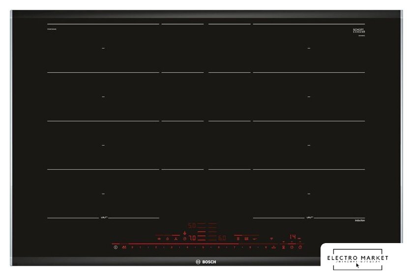 индукционная на 4 конфорки, cтеклокерамика, мощность: 7400 Вт, независимая установка, размеры (ШхГ): 81.6x52.7 см