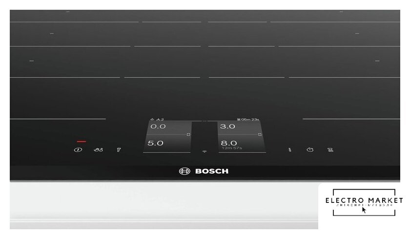 индукционная на 5 конфорок, cтеклокерамика, независимая установка, размеры (ШхГ): 90x52 см