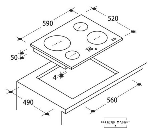 HiLight на 4 конфорки, cтеклокерамика, мощность: 6600 Вт, независимая установка, размеры (ШхГ): 59x52 см