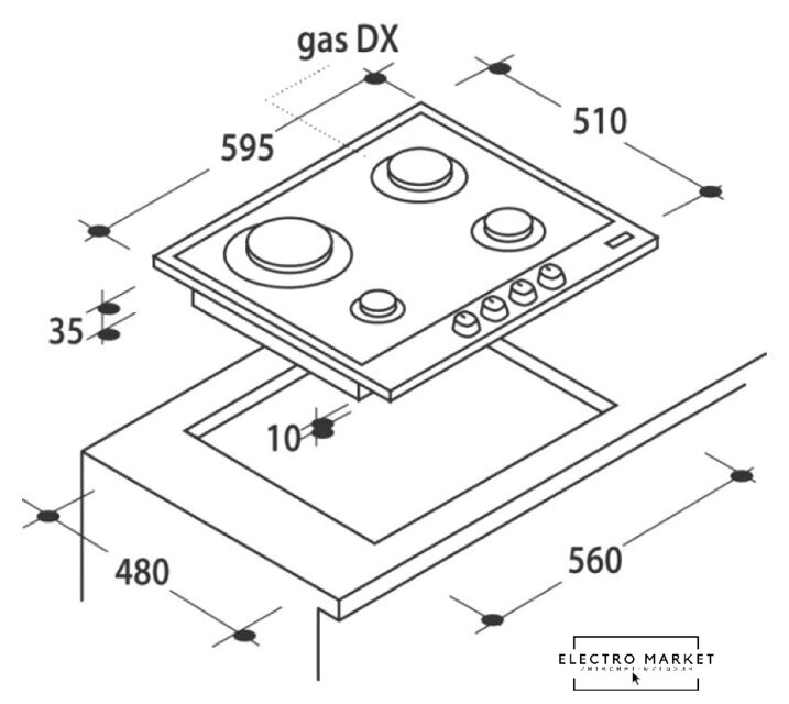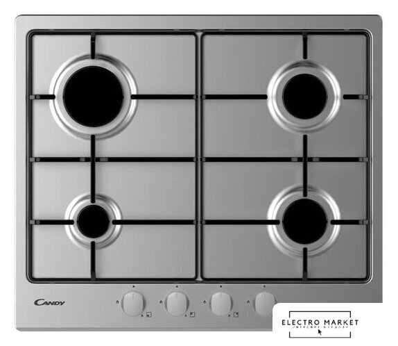 газовая на 4 конфорки, нержавеющая сталь, автоматический электроподжиг, газ-контроль, решетки: чугун, независимая установка, размеры (ШхГ): 60x51.5 см