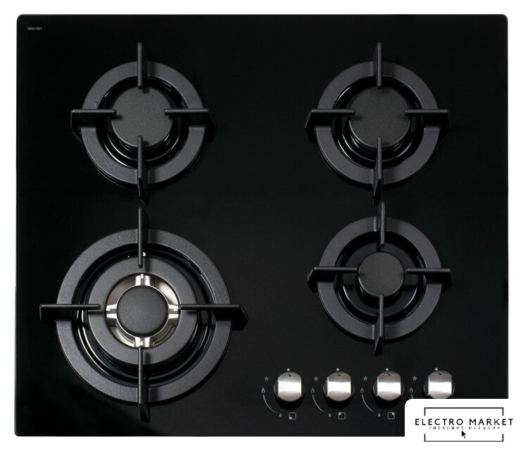 газовая на 4 конфорки, закаленное стекло, мощность: 6950 Вт, автоматический электроподжиг, газ-контроль, решетки: чугун, независимая установка, размеры (ШхГ): 60x51 см