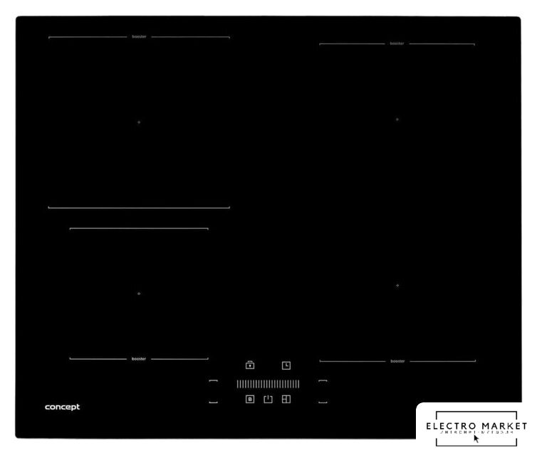 индукционная на 4 конфорки, cтеклокерамика, мощность: 7200 Вт, автоматика закипания, независимая установка, размеры (ШхГ): 59x51 см