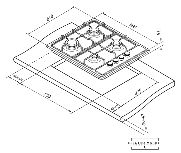 | Подробная информация о конфорках | передняя левая 3 кВтпередняя правая 2 кВтзадняя левая 1 кВтзадняя правая 1 кВт |
