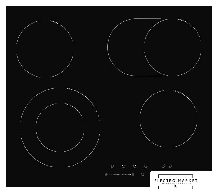 HiLight на 4 конфорки, cтеклокерамика, мощность: 6800 Вт, независимая установка, размеры (ШхГ): 58x51 см
