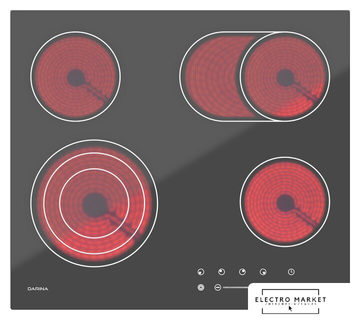HiLight на 4 конфорки, cтеклокерамика, мощность: 6000 Вт, независимая установка, размеры (ШхГ): 59x52 см