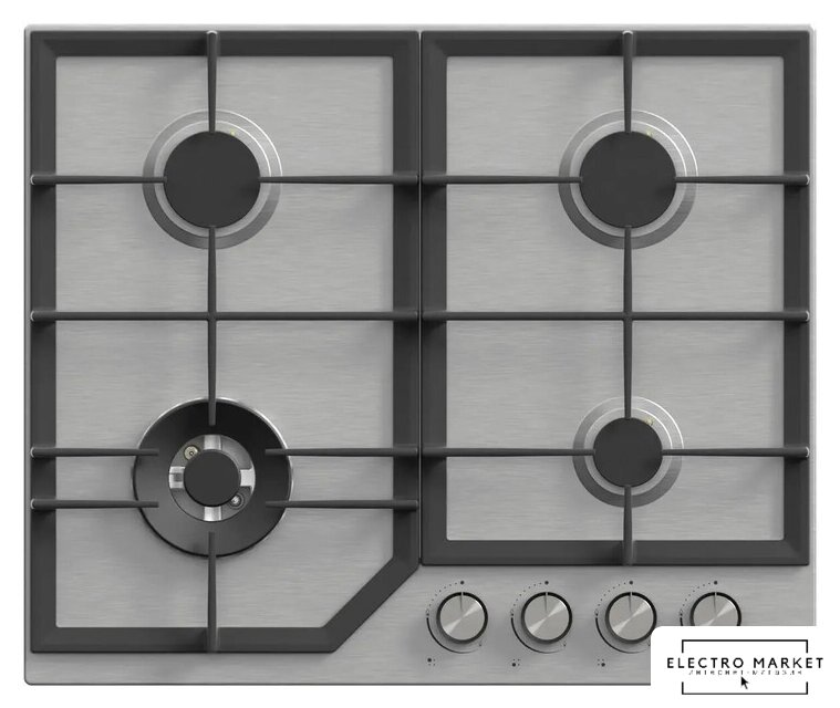 газовая на 4 конфорки, нержавеющая сталь, автоматический электроподжиг, газ-контроль, решетки: чугун, независимая установка, размеры (ШхГ): 60x51.5 см