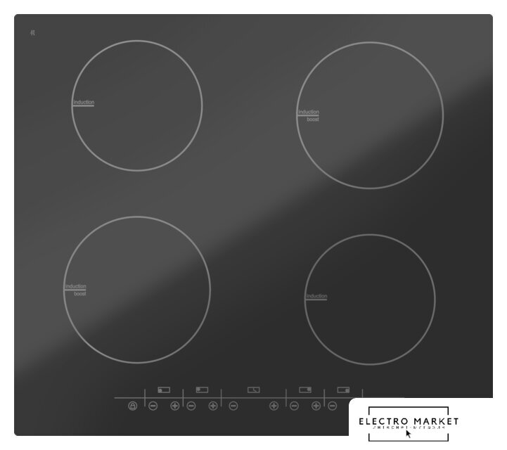 индукционная на 4 конфорки, cтеклокерамика, независимая установка, размеры (ШхГ): 59x52 см