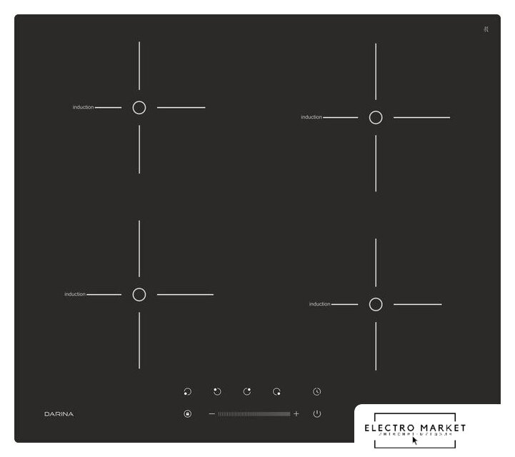 индукционная на 4 конфорки, cтеклокерамика, мощность: 6800 Вт, независимая установка, размеры (ШхГ): 59x52 см