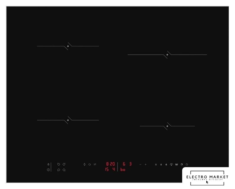 индукционная на 4 конфорки, cтеклокерамика, мощность: 7400 Вт, независимая установка, размеры (ШхГ): 60x51 см