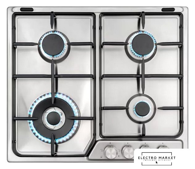 газовая на 4 конфорки, нержавеющая сталь, мощность: 7800 Вт, автоматический электроподжиг, газ-контроль, решетки: чугун, независимая установка, размеры (ШхГ): 58.2x52 см