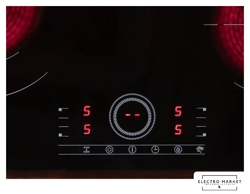 HiLight на 4 конфорки, cтеклокерамика, мощность: 6400 Вт, независимая установка, размеры (ШхГ): 59.5x53 см