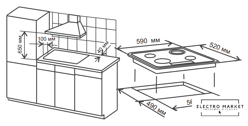 HiLight на 4 конфорки, cтеклокерамика, мощность: 6900 Вт, независимая установка, размеры (ШхГ): 58x51 см