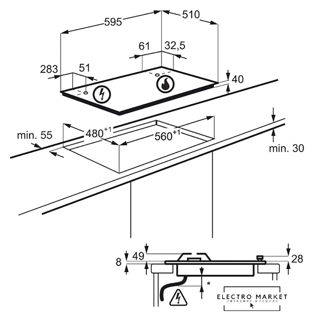 | Подробная информация о конфорках | Левая WOK 4000 Вт, 128 ммЛевая задняя 1900 Вт, 70 ммПередняя правая 1000 Вт, 54 ммПравая задняя 1900 Вт, 70 мм |