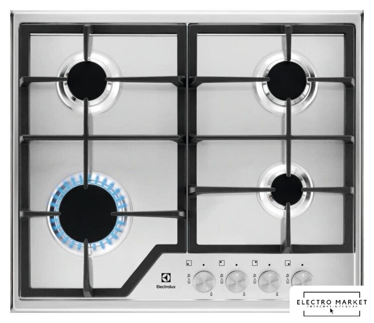 газовая на 4 конфорки, нержавеющая сталь, мощность: 9000 Вт, автоматический электроподжиг, газ-контроль, решетки: чугун, независимая установка, размеры (ШхГ): 58x50 см