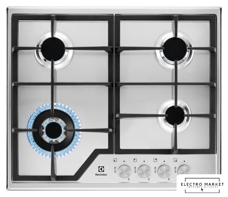 газовая на 4 конфорки, нержавеющая сталь, мощность: 9500 Вт, автоматический электроподжиг, газ-контроль, решетки: чугун, независимая установка, размеры (ШхГ): 58.6x50.6 см