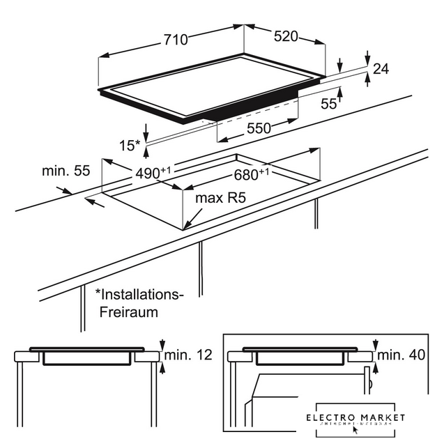 индукционная на 4 конфорки, cтеклокерамика, мощность: 7400 Вт, автоматика закипания, независимая установка, размеры (ШхГ): 65x51 см