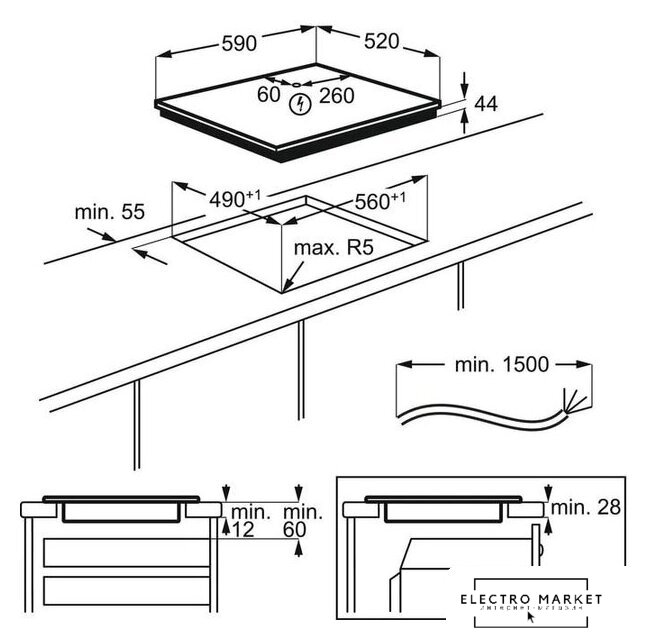 индукционная на 4 конфорки, cтеклокерамика, автоматика закипания, независимая установка, размеры (ШхГ): 58x51 см
