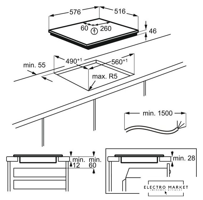 индукционная на 4 конфорки, cтеклокерамика, мощность: 4600 Вт, независимая установка, размеры (ШхГ): 58.3x51.3 см