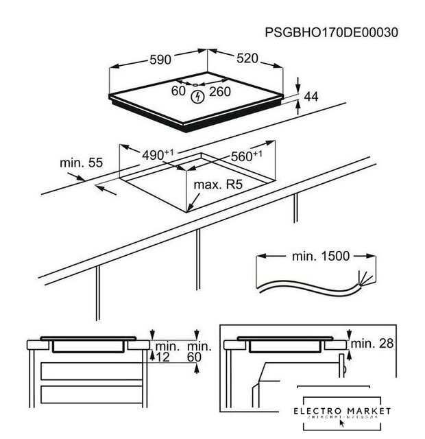 индукционная на 4 конфорки, cтеклокерамика, мощность: 6400 Вт, независимая установка, размеры (ШхГ): 59x52 см
