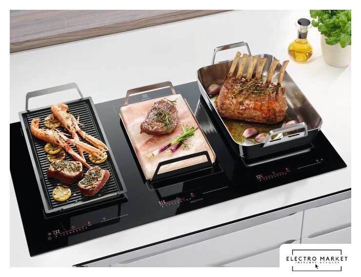 индукционная на 5 конфорок, cтеклокерамика, мощность: 7400 Вт, автоматика закипания, независимая установка, размеры (ШхГ): 83.4x52.7 см