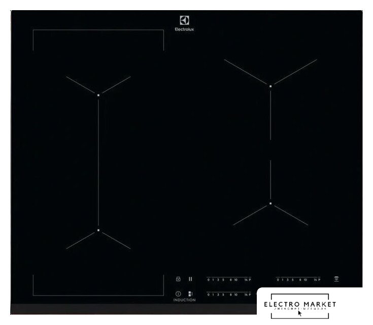 индукционная на 4 конфорки, закаленное стекло, мощность: 6000 Вт, независимая установка, размеры (ШхГ): 59x52 см