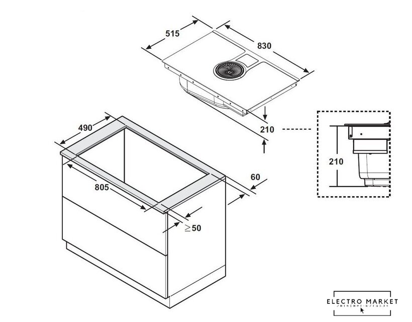 индукционная на 6 конфорок, cтеклокерамика, мощность: 7400 Вт, независимая установка, размеры (ШхГ): 80x51 см