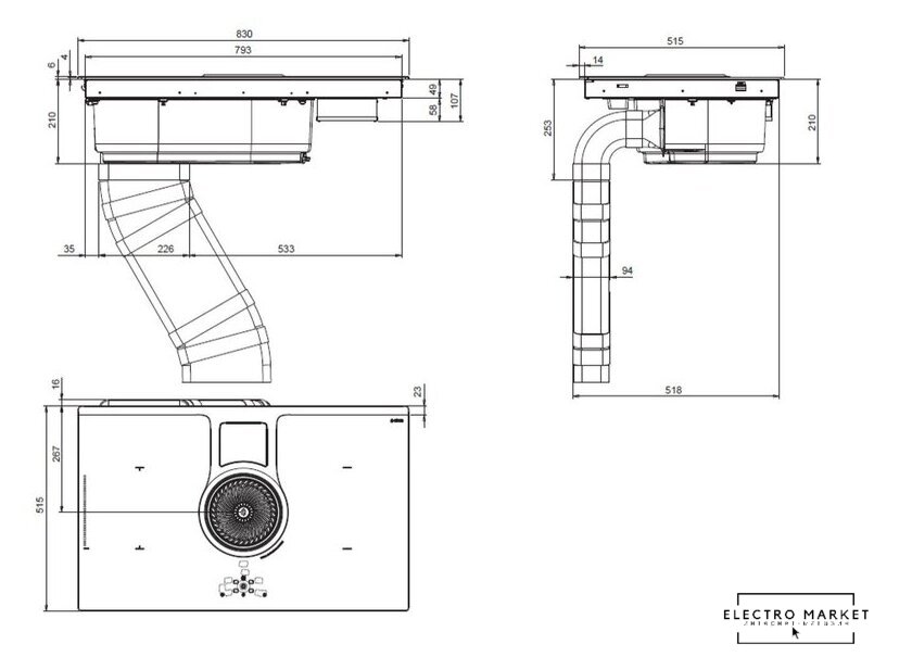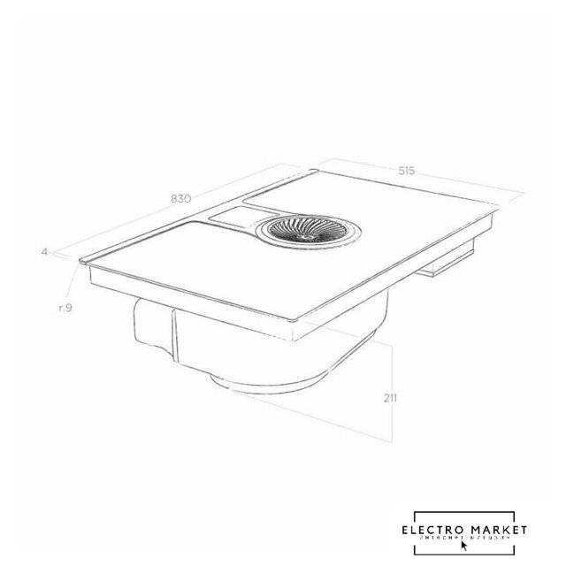 индукционная на 4 конфорки, закаленное стекло, мощность: 7400 Вт, независимая установка, размеры (ШхГ): 83x51.5 см