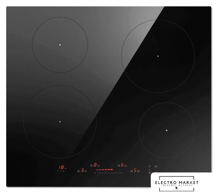 индукционная на 4 конфорки, cтеклокерамика, мощность: 7400 Вт, независимая установка, размеры (ШхГ): 59.2x52.2 см